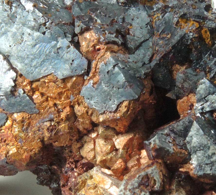 | Description: | Lustrous gray-metallic octahedral cuprite crystals to 30 mm partially pseudomorphed from within to native copper. The cuprite crystallized first, then altered from within to native copper, maintaining the cuprite shape. Collected ca. 2010 |