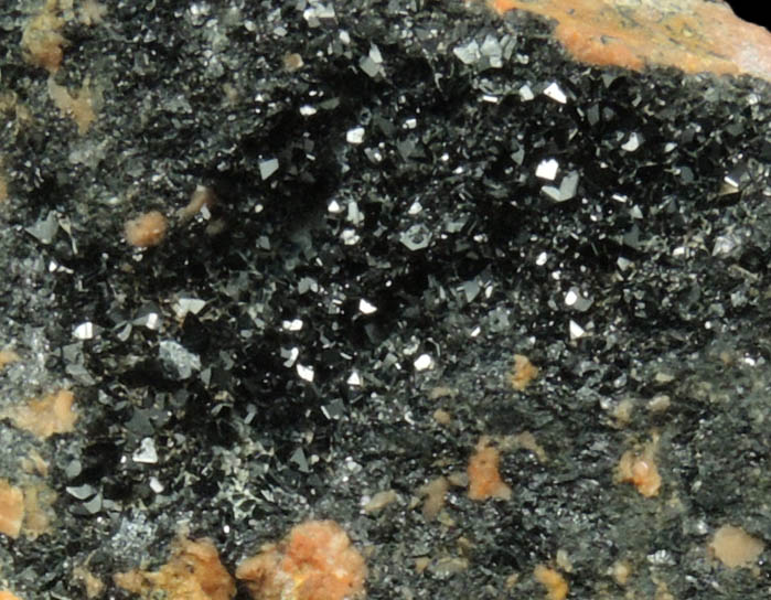 | Description: | Lustrous black babingtonite crystals to 1 mm in veins running through brown matrix. When the specimen was split, one vein was exposed with many lustrous black babingtonite crystals. Collected ca. 1965. Babingtonite is the State Mineral of Massachusetts |