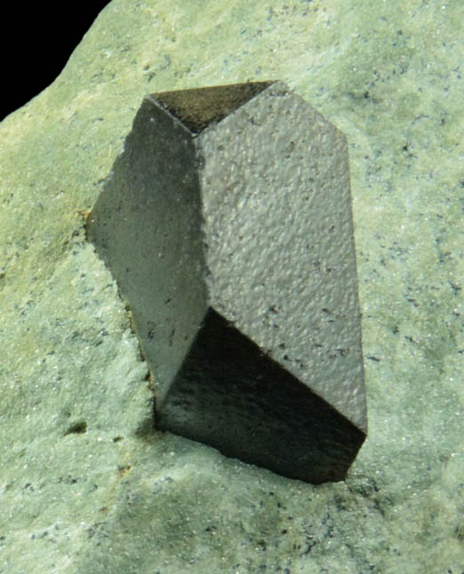 | Description: | Sharp black-metallic magnetite crystal in fine-grained green matrix. The magnetite crystal is asymmetric octahedral form. Originally acquired in August 1995 from Bob Jenkins (Coisas Preciosas) |