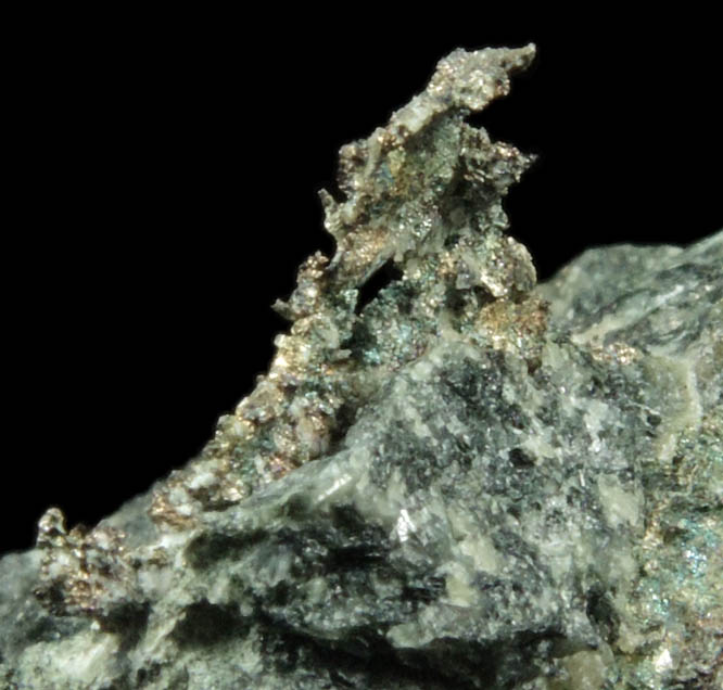 | Description: | Sheet formations of native silver (naturally occurring silver) in dark-gray matrix. Mined in the 1920s |
