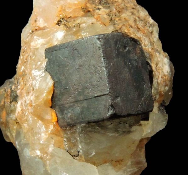 | Description: | Two lustrous brown limonite pseudomorphs after cubic pyrite crystals to 5.5 mm in milky quartz. The pyrite crystallized first, then altered molecule by molecule to limonite, maintaining the original form of the pyrite crystals. Collected in 1994 |