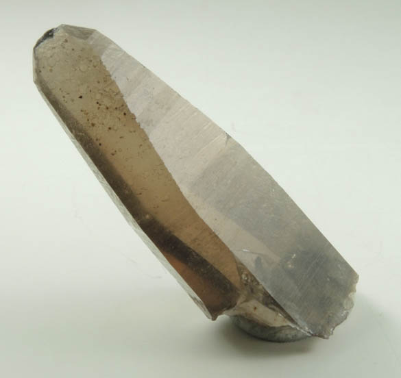 | Description: | Lustrous transparent smoky quartz crystal with remnants of tan microcline included in the base where it was attached. The smoky quartz is a tapered shape because the sides are composed of second order pyramid {6061} faces. Collected ca. 1993 |