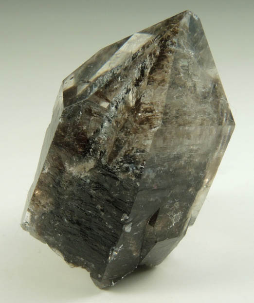 | Description: | Classic lustrous transparent colorless quartz crystal with dark, almost black, internal phantom-growth zone caused by an unidentified dark mineral coating an earlier phase of the quartz that continued to grown, encapsulating the earlier zone. Originally acquired from Bob Acker in August 1994 |