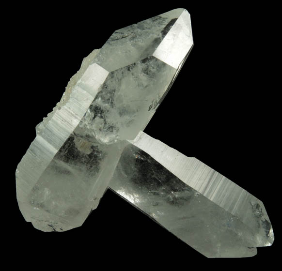 | Description: | Two intersecting lustrous transparent colorless quartz crystals that have many smaller quartz crystal on the rear faces. One of the large quartz crystals is terminated at both ends. Originally acquired ca. 1995 from Sal Avella (1928-2013) |