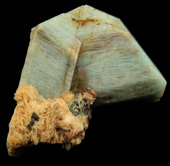 | Mineral: | Microcline var. Amazonite (twinned crystals) with Albite |