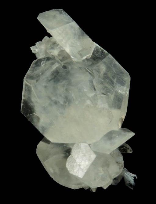 | Description: | Several interconnected lustrous transparent colorless calcite crystals with remnants of fibrous palygorskite on one end. The calcite crystals are flattened hexagonal form dominated by three-faced shallow pyramidal terminations. Collected ca. 1962 |