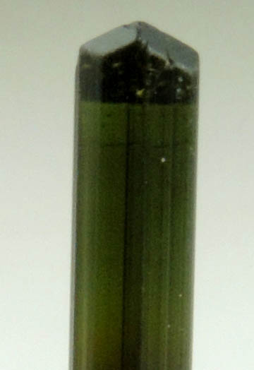 | Description: | Lustrous transparent dark-green elbaite tourmaline crystal with no matrix attached. The elbaite crystal has striated prism faces, three-faced pyramidal termination, and shows it is internally flawless when illuminated from the rear. |