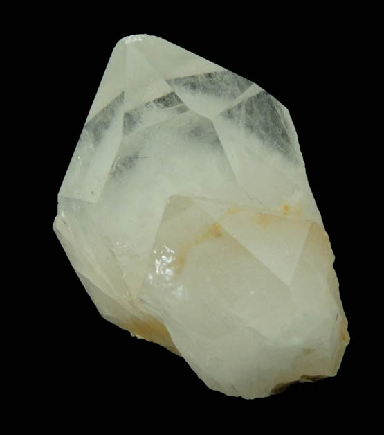 | Description: | Two interconnected lustrous transparent colorless quartz crystals with lighter-colored phantom-growth zones inside the crystals. The quartz phantom zones appears to be composed of small bubbles when viewed under magnification Collected ca. 1990 |