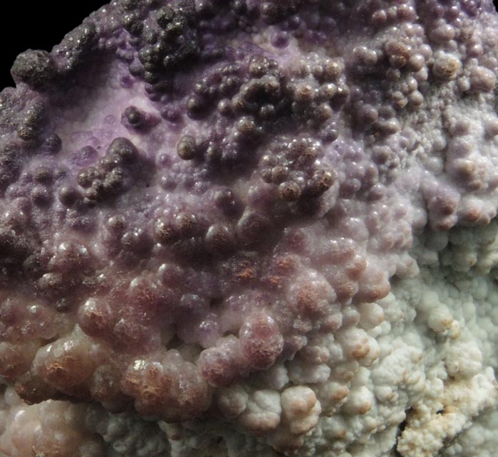 | Description: | Lustrous translucent purple-to-white fluorite epimorph after a 40 mm calcite crystal. The surfaces of the fluorite are composed of many microscopic parallel fluorite crystals in hemispherical aggregates to 3 mm diameter. Ex. Marshall Sussman private collection |