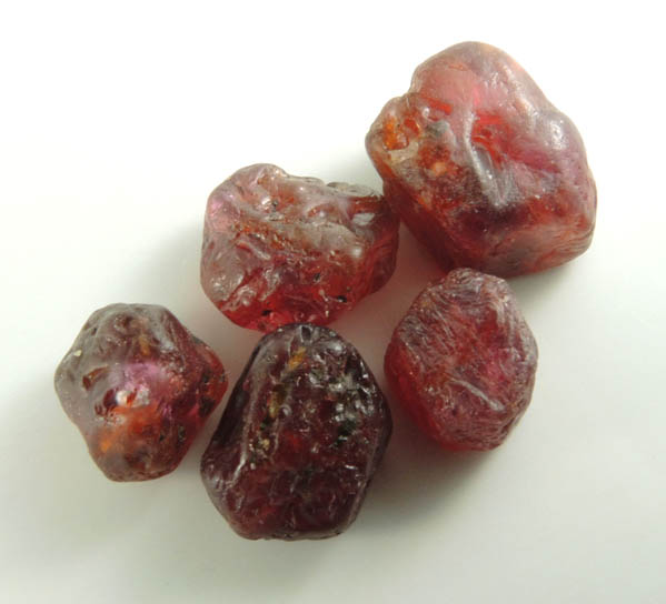 | Mineral: | Corundum var. Ruby (five alluvial crystals) |