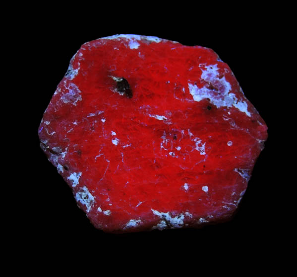 | Description: | Large lustrous translucent pink ruby crystal, the pink gem variety of the mineral corundum, with no matrix. The ruby crystal is tabular hexagonal form, has good pink color, with minor remnants of light-colored matrix embedded in the surfaces. Fluoresces red under LW UV illumination. Weight: 4.4 grams |