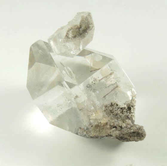 | Description: | Lustrous transparent Herkimer Diamond crystal, the variety of quartz crystals from the Herkimer region, with a smaller crystal on one corner, on a fragment of brown dolostone. Herkimer clusters are rare because they separate during collecting. Collected in 1995 |