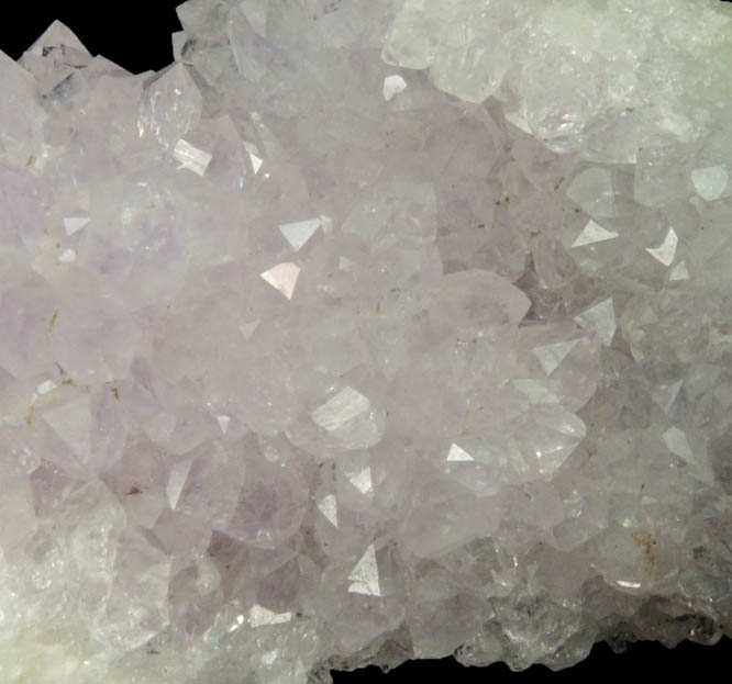 | Description: | Sparkling cluster of lustrous transparent pale-purple amethyst quartz crystals over a compact crystallized mass of colorless (white) quartz. Amethyst of this quality was uncommon at this quarry. Collected in 1980s to 1990s by Prof. Martin Becker |