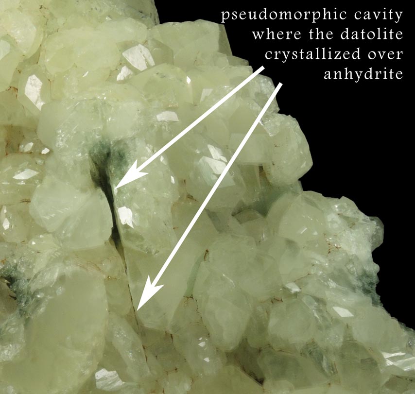 | AllMinerals/JohnBetts-FineMinerals > Online Mineral Museum Photographic Archive > Minerals from New Jersey > Datolite and Prehnite with pseudomorphic molds after Anhydrite |
