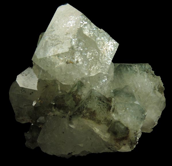 | Description: | Lustrous transparent-to-translucent colorless apophyllite crystals to 15 mm, with internal zones colored green by microscopic chlorite inclusions, with scattered yellow-metallic pyrite crystals to 1.5 mm. Collected in 1990s by Prof. Martin Becker, author of Recent Mineral Finds at the Millington Quarry in Rocks and Minerals v.73 #5 |