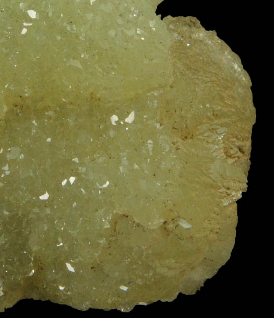 | Description: | Sparkling double-sided cluster of lustrous transparent colorless apophyllite crystals to 1 mm, some colored green by chlorite inclusions, over hemispherical formations of radiating translucent green prehnite crystals to 5 mm. Collected in 1990s by Prof. Martin Becker, author of Recent Mineral Finds at the Millington Quarry in Rocks and Minerals v.73 #5 |