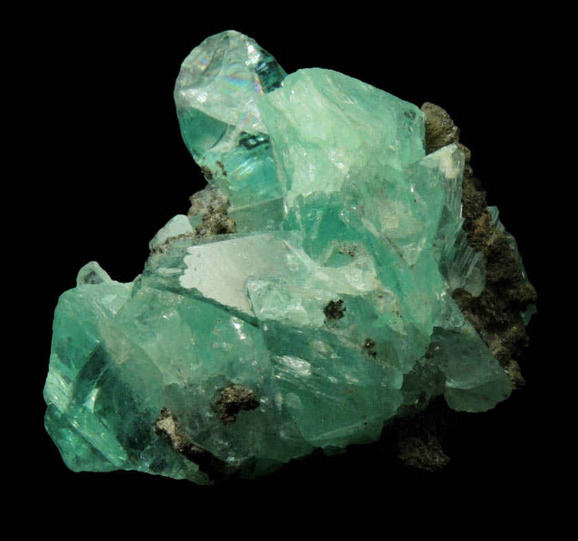 | Description: | Complex cluster of intersecting (most are incomplete) transparent green phosphophyllite crystals with remnants of gray matrix on bottom. Phosphophyllite crystals, a rare hydrous zinc-iron-manganese phosphate, are exceptionally rare with is green color. From my private collection. Ex. Joe Cilen (1916-1997) #6039, collected ca. 1950 |