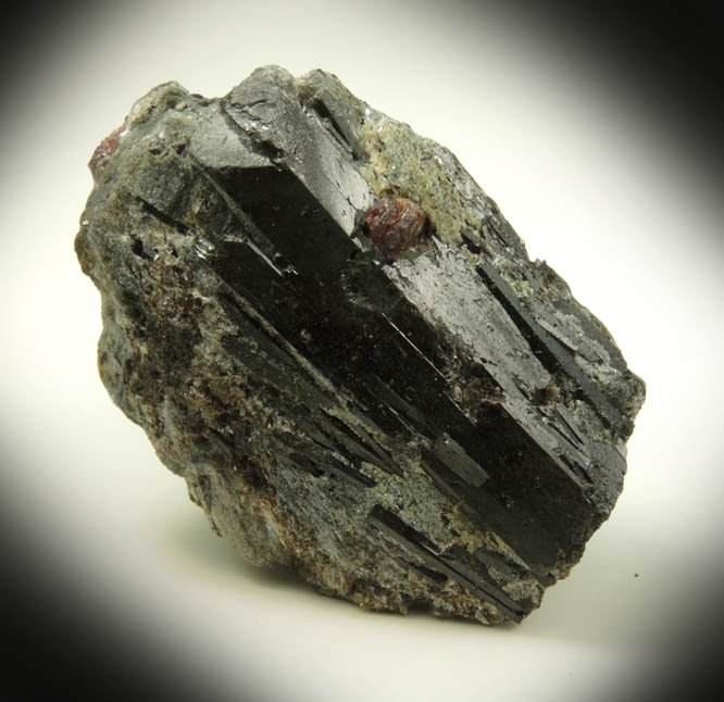 | Description: | Lustrous slender black tourmaline crystals fine-grained mica schist. References disagree about whether these tourmaline crystals are dravite or schorl tourmaline. They should be labeled dravite-schorl to be safe. |
