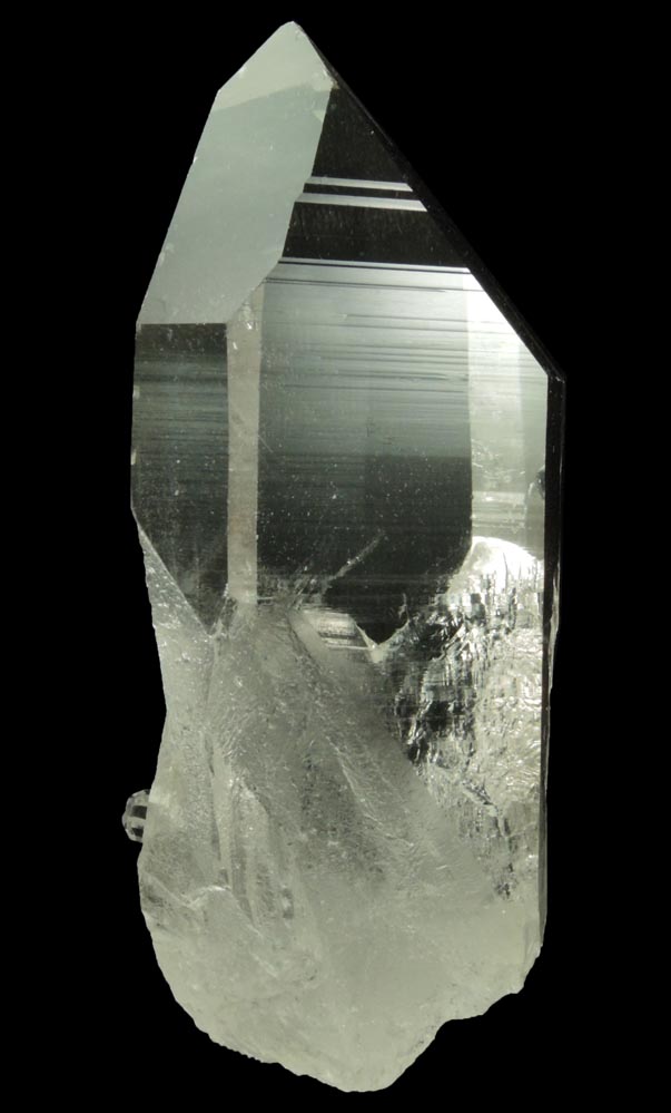 | Description: | Lustrous transparent colorless quartz crystal with no matrix. The quartz crystal is flawless optical-grade in the upper half. The quartz crystal has subtly striated prism faces. Two edges of the termination are chipped. Ex. Miller #D113; collected in 1988 |
