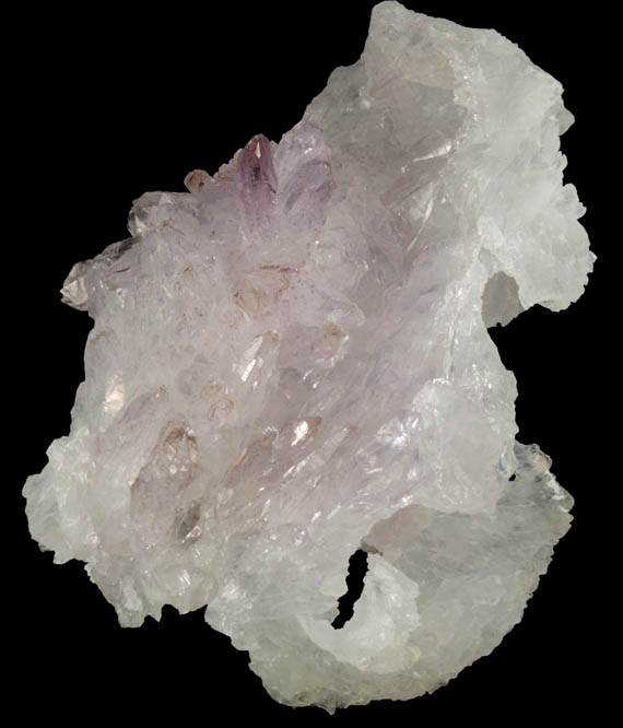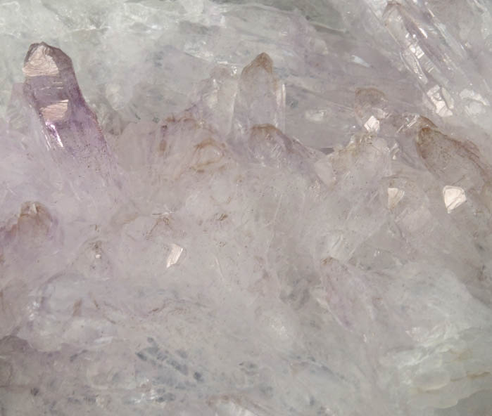 | Description: | Thin fan-shaped formation of lustrous pale to purple amethyst quartz crystals. These formations are commonly called Amethyst Flowers because of their resemblance to flowers. One amethyst crystal in the center has deeper purple color than others. Ex. Miller #D251 |