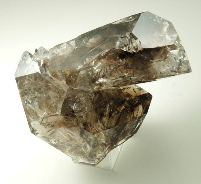 | Description: | Two interconnected lustrous transparent smoky quartz crystals with skeletal growth patterns on the interior. These smoky quartz crystals were found by local collectors at an undisclosed location (to protect their source). Ex. Miller #M3811; ex. Betts #76081; collected ca. 2011-2012 |
