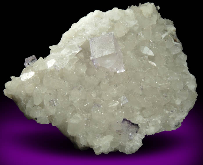 | Description: | Lustrous transparent pale-purple cubic fluorite crystals to 10 mm, with sugar-like transparent colorless quartz microcrystals and transparent brown sphalerite microcrystals, over lustrous transparent colorless scalenohedral calcite crystals to 7 mm. |