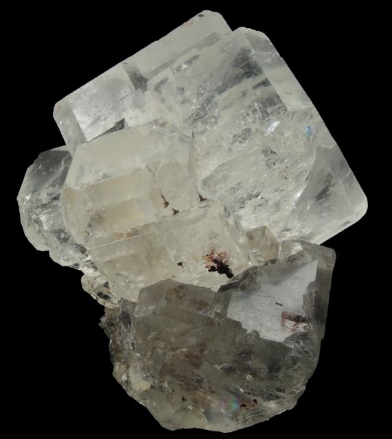 | Description: | Cluster of lustrous transparent colorless fluorite crystals to 34 mm with a fragment of black sphalerite and yellow-metallic pyrite on the bottom. The fluorite crystals are cubic form with dodecahedral edge faces. Ex. Miller #M1103 |