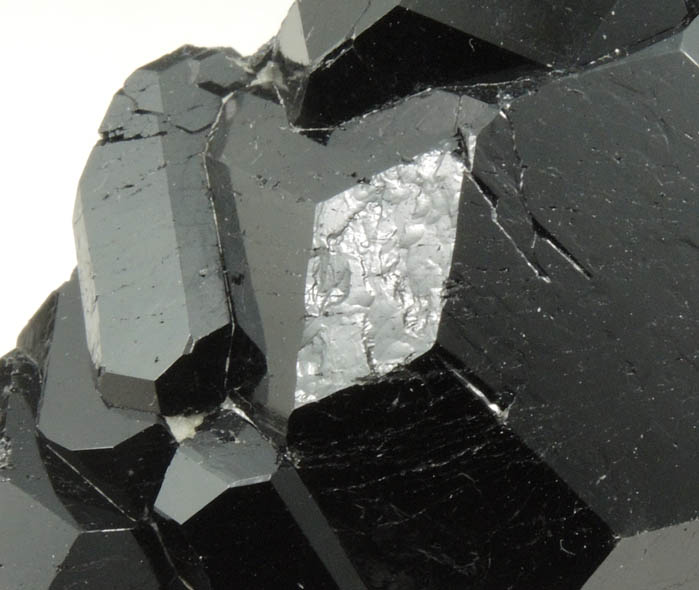 | Description: | Lustrous black dravite-uvite tourmaline crystals with minor gray-white calcite. The dravite-uvite crystals have subtle post-crystallization surface fractures. Both dravite and uvite tourmaline occur at this locality should be labeled dravite-uvite. Ex. S. Kelland collection; acquired in 2015; ex. Betts #60013 |