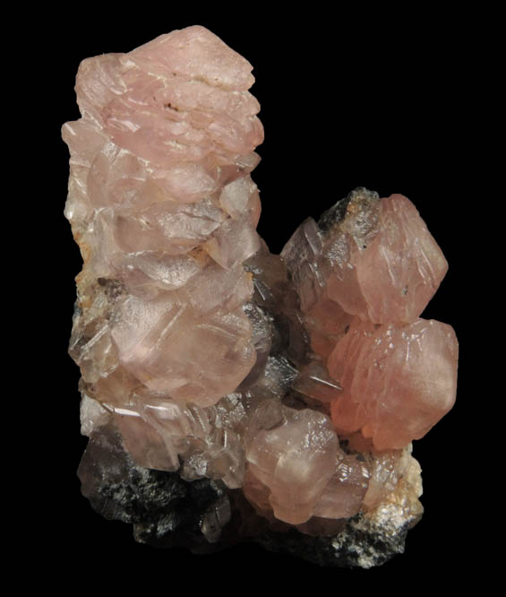 | Description: | Many lustrous disc-like rhombohedral translucent pink smithsonite crystals in linear aggregates of stacked parallel crystals over sulfide matrix. The smithsonite crystals are colored pink cobalt impurities and are commonly known as Cobaltoan Smithsonite. Ex. Miller collection T2466; ex. Betts #62045 |
