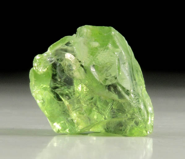 | Description: | Fragment of gem-grade green peridot, the gem variety of the mineral forsterite. Weight: 1.4 grams. Ex. Miller collection T1758; acquired in 1981 from S. Ulatowski from old stock |