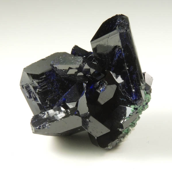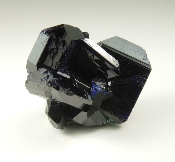 | Description: | Classic specimen of lustrous translucent dark-blue contact-twinned azurite crystals to 15 mm with green arsentsumebite microcrystals on bottom. The azurite crystals exhibit the rare Easter Pocket-habit of broad, flat blades (see Tsumeb II, pp. 243-247). Ex. Miller collection T1058; ex. Betts #69314; ex. Georg Gebhard (author of Tsumeb I and Tsumeb II, the definitive reference books on Tsumeb) |
