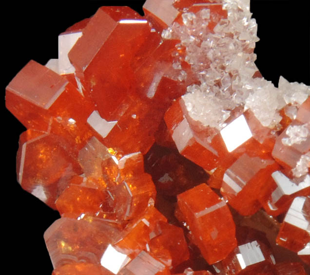 | Description: | Lustrous transparent red-to-tan hexagonal vanadinite crystals to 7 mm over white barite. Some vanadinite crystals are coated with transparent colorless scalenohedral calcite crystals to 1 mm. Ex. Miller collection T2350; ex. Betts #63207 |