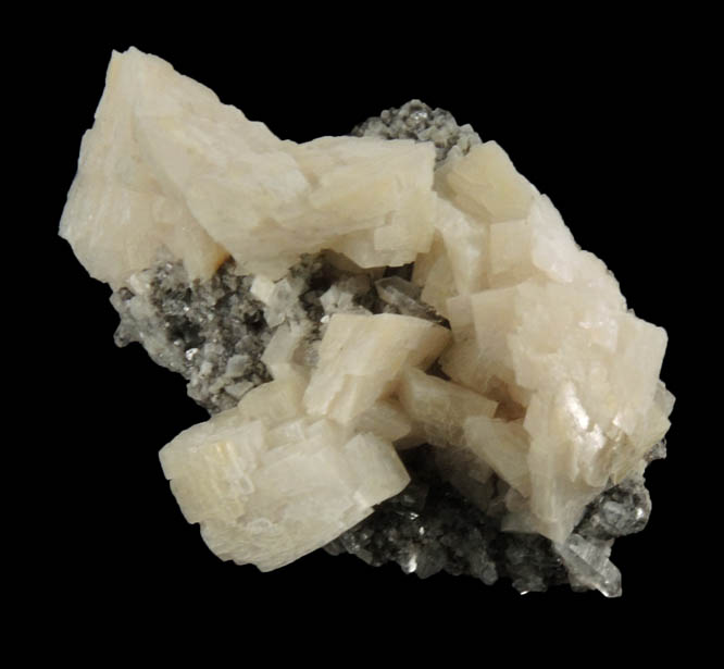 | Description: | Lustrous translucent pale-beige rhombohedral dolomite crystals in twisted aggregates of interconnected crystals on lustrous transparent colorless quartz crystals to 0.5 mm. Ex. Miller collection T2460; ex. Betts #62532; collected in 2008 |