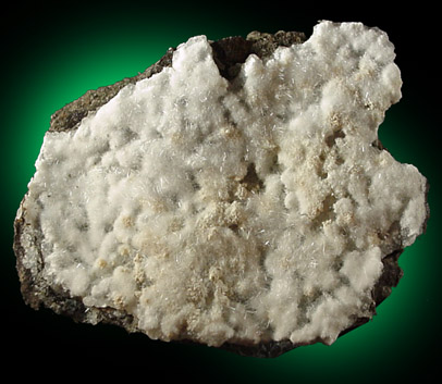 | Description: | Plate of basalt matrix coated with white sprays of fine mesolite needle-like crystals to 3 mm long. Minor thomsonite and chabazite mixed in. Mounted in plastic box for protection. Ex. R. Bates Collection #1309 |