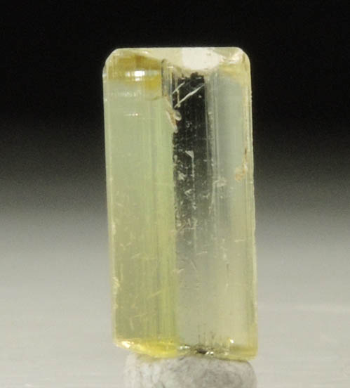 | Description: | Single crystal of lustrous transparent pale yellow-green elbaite tourmaline with no matrix attached. Ex. Miller collection T178; collected in 2016 |