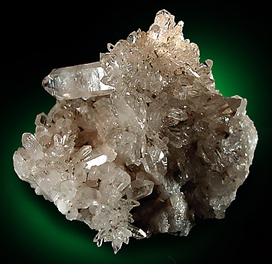 | Description: | Cluster of transparent colorless quartz crystals to 20 mm long from little-known locality. Personally collected ca. 1994 |