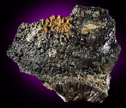 | Description: | A thick rind of crystallized black goethite with mini-stalactites grown on the surface of similar goethite. Around the edge the crystallized goethite is well exposed. Ex. Floyd Faux |