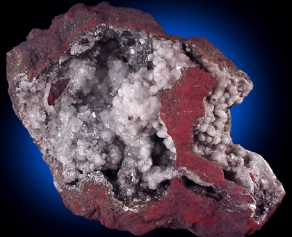 | Description: | Pocket in hematite matrix lined with white calcite and quartz. Collected ca. 1940. Ex. Cilen collection #1170 |