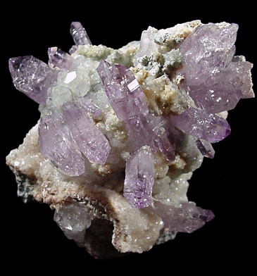 | Description: | Light purple translucent crystals of amethyst quartz to 2 cm long in on drusy matrix. The best specimen I have ever obtained from this European locality. A real beauty, |