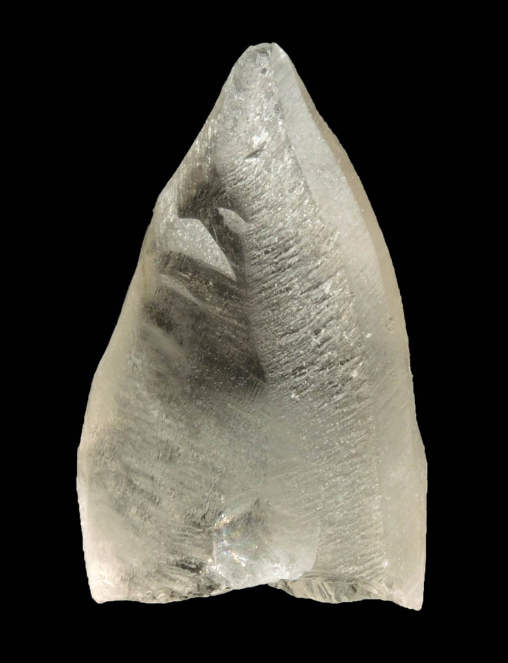 | Description: | Lustrous transparent colorless topaz crystal with no attached matrix. The topaz has unusual tapered (pointed) form and the surfaces are composed of parallel microscopic faces indicating the topaz crystal was naturally etched by pocket solutions. Weight: 14.9 grams |