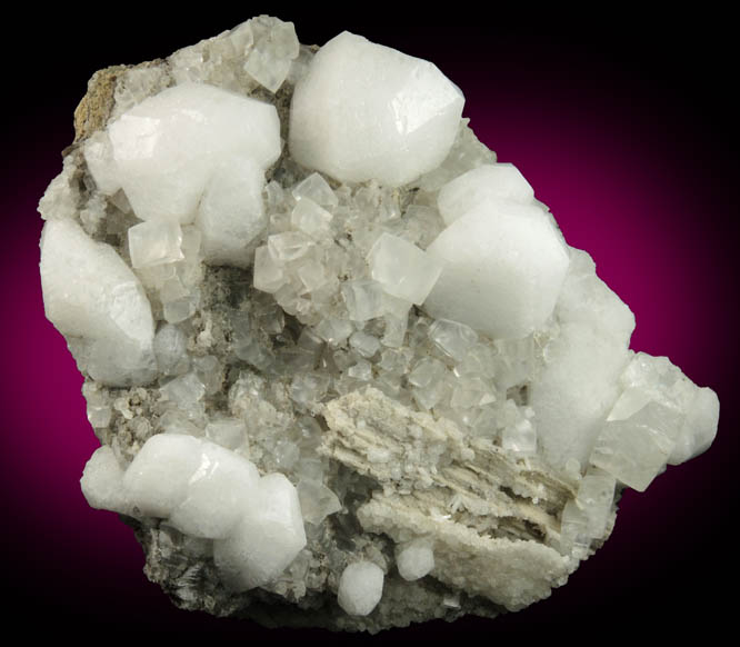 | AllMinerals/JohnBetts-FineMinerals > Online Mineral Museum Photographic Archive > Minerals from New Jersey > Analcime and Calcite on pseudomorphs after Anhydrite |