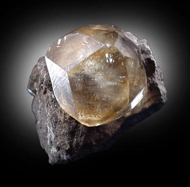 | Description: | Single transparent calcite crystal 20 mm across on limestone matrix. |